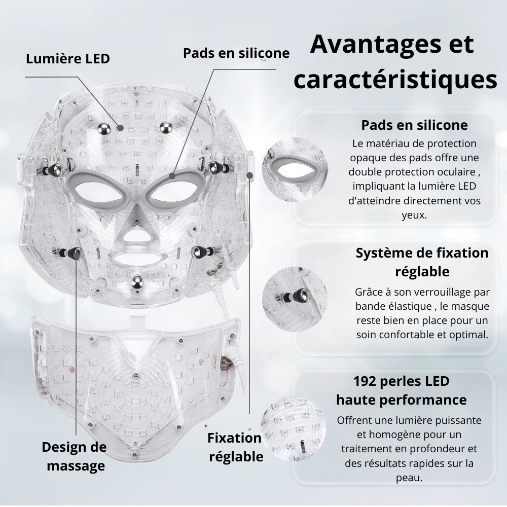 - 192 perles LED haute performance : Diffusion homogène de la lumière pour un traitement optimal.